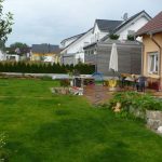 Ja, inzwischen basteln wir am Garten; kürzlich ist die Terrasse fertig geworden. Irgendwie schrickt man nach so langer Zeit auf der Baustelle vor nichts mehr zurück; ich habe ein Hochbeet aus Muschelkalkmauersteinen gemauert und ein Wasserbecken betoniert. Wir haben sehr viel gelernt. Wir kennen unser Haus in- und auswendig. Ich würde jederzeit wieder mit dieser Firma bauen und kann sie jedem Selberbauer empfehlen. Man merkt definitiv die jahrelange Erfahrung, die Herr Böhm im Umgang mit bautechnischen Laien hat; ich kann mit nicht vorstellen, daß eine Firma, die normalerweise mit Profis arbeitet, uns so hätte anleiten können.