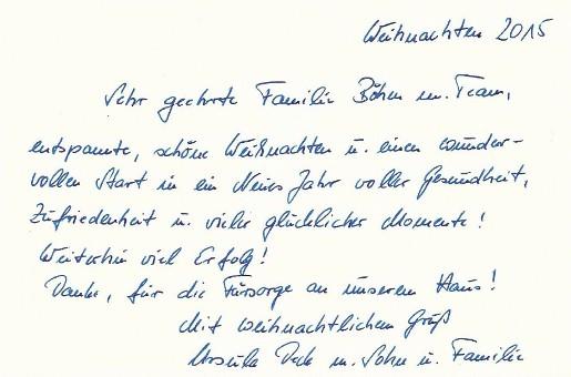 Wir fühlten uns bei Ihnen immer gut aufgehoben. Danke für Alles!“