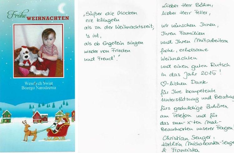 wir möchten Ihnen für Ihren Advents- und Weihnachtsgruß herzlich danken und Ihnen ein frohes Weihnachtsfest sowie ein gesundes, glückliches und erfolgreiches Neues Jahr wünschen.
